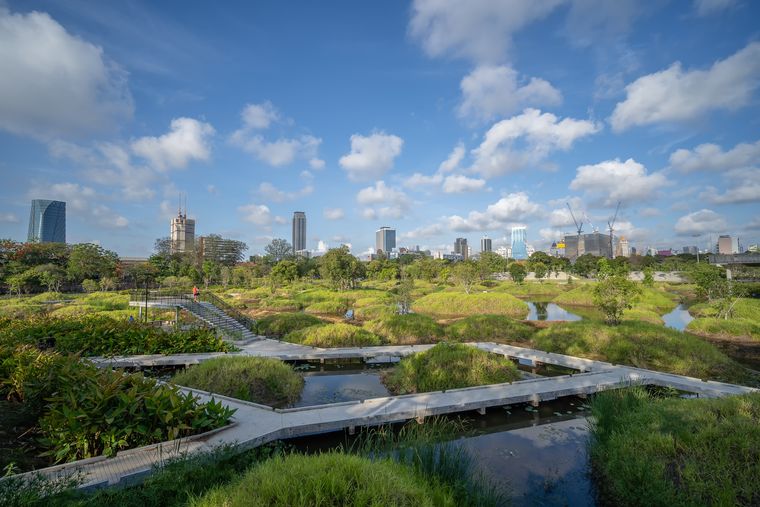 "Sünger şehirler" terimi, ağaçlar, göller ve parklar gibi bol miktarda doğal alana sahip kentsel alanları ve yağmuru emmek, selleri önlemek için tasarlanmış kentsel tasarımları tanımlamak için kullanılıyor.